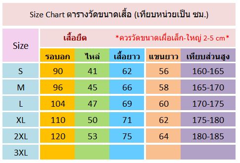 ขนาด | S - 2XL |